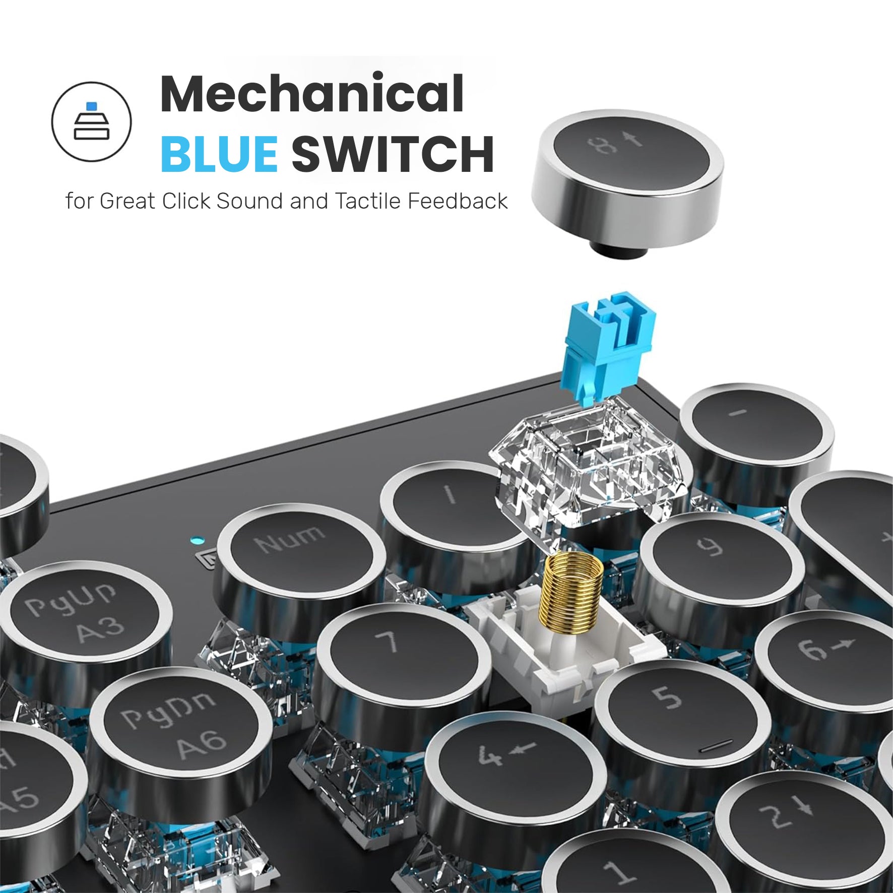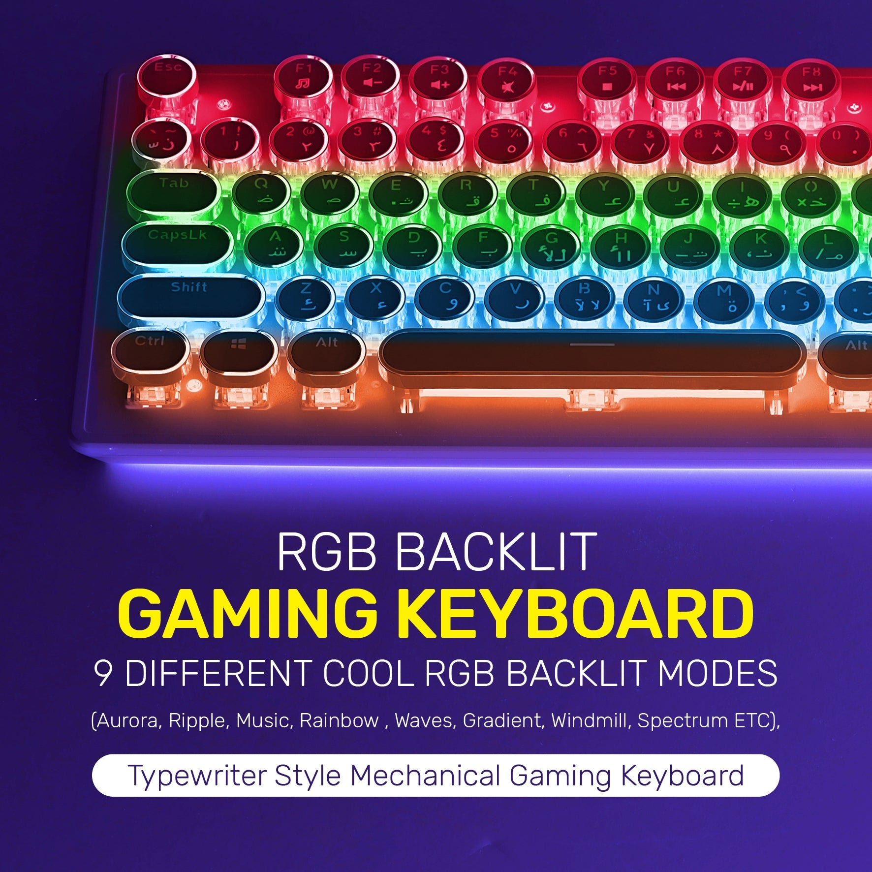 • [Retro Typewriter Style with Mechanical Keys] - Mechanical blue switch for ultimate gaming performance. The mechanical keys offer medium resistance, audible click sound & tactile feedback. Vintage steampunk round keycaps looks like a classical typewriter, brings you comfortable typing feeling & stable clicking touch.