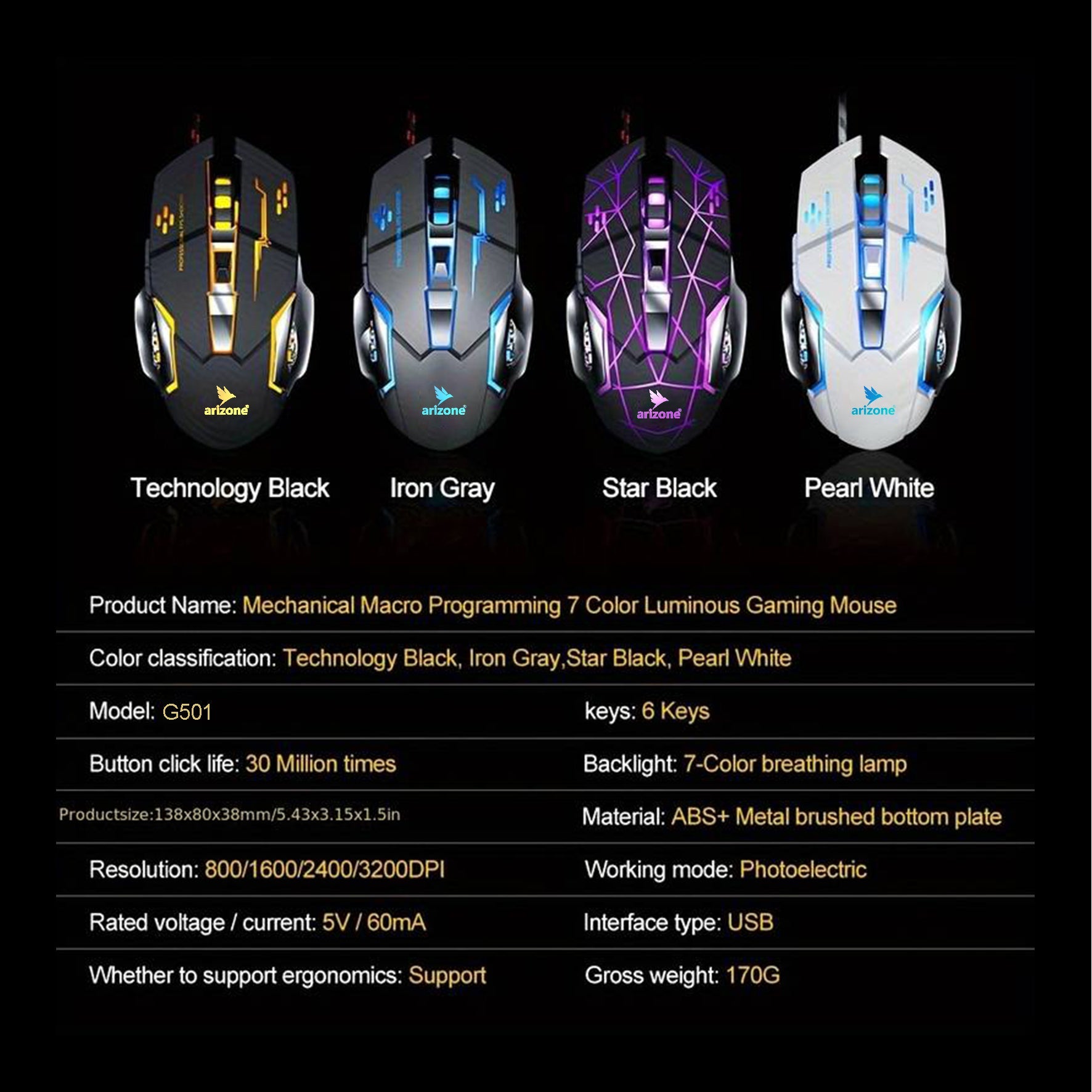 • 🖱️【7 Colors RGB Backlight】Unique cracking design combining with 7 colors glaring LED light,multiple colors are glowing at once, highlights the atmosphere of gaming. Creates a cool and colorful game atmosphere to enhance the excitement of the game. Best for pc games.