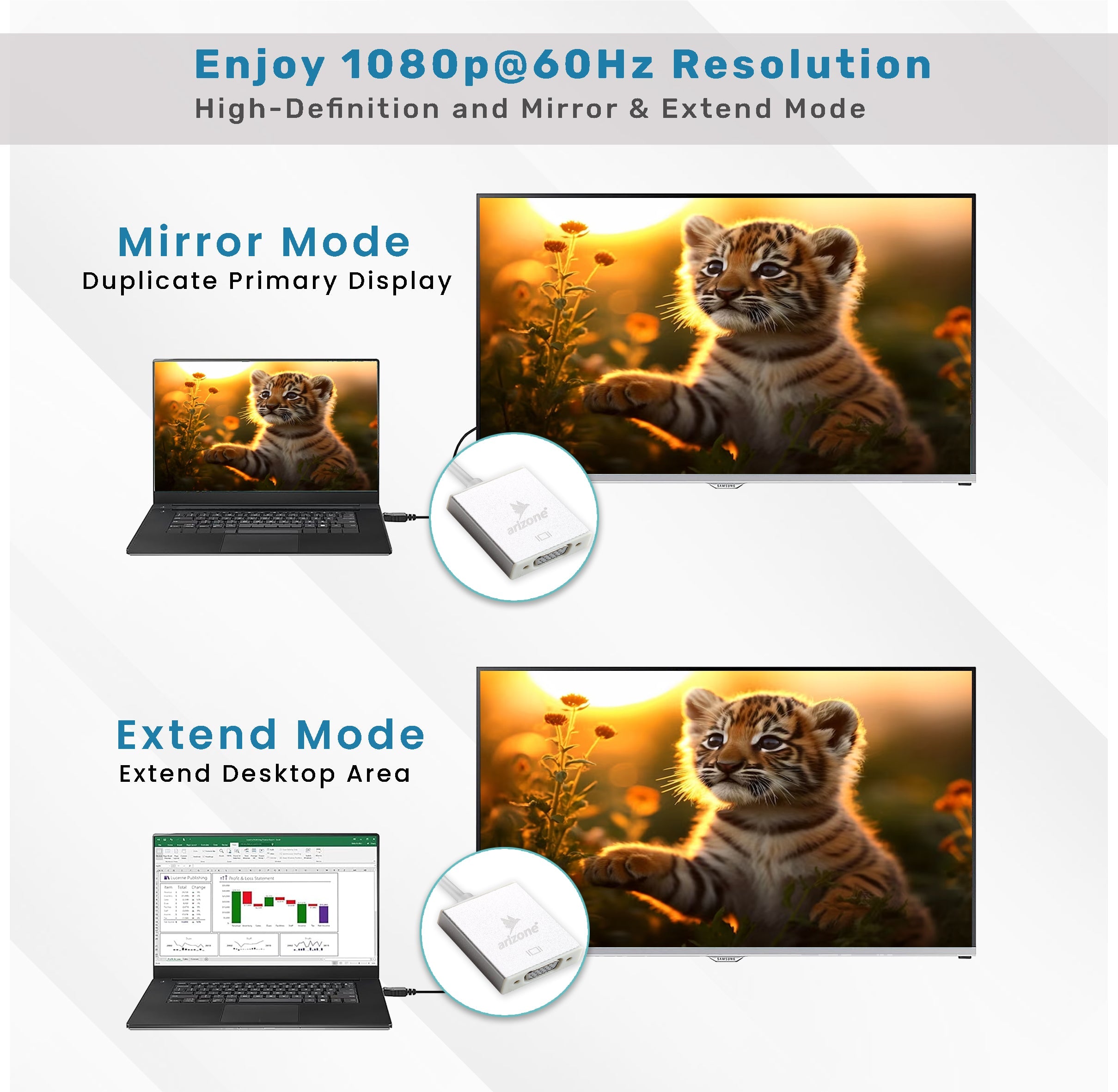 *Transmits high-definition video from your computer to a monitor for video streaming or gaming; Supports video resolutions up to 60 HZ/1080P
